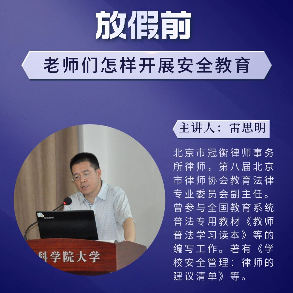 假期主要事故类型有哪些?应当重点对学生开展哪些方面的安全教育?主讲人:雷思明 直播时间:2023年6月20日19:30 -